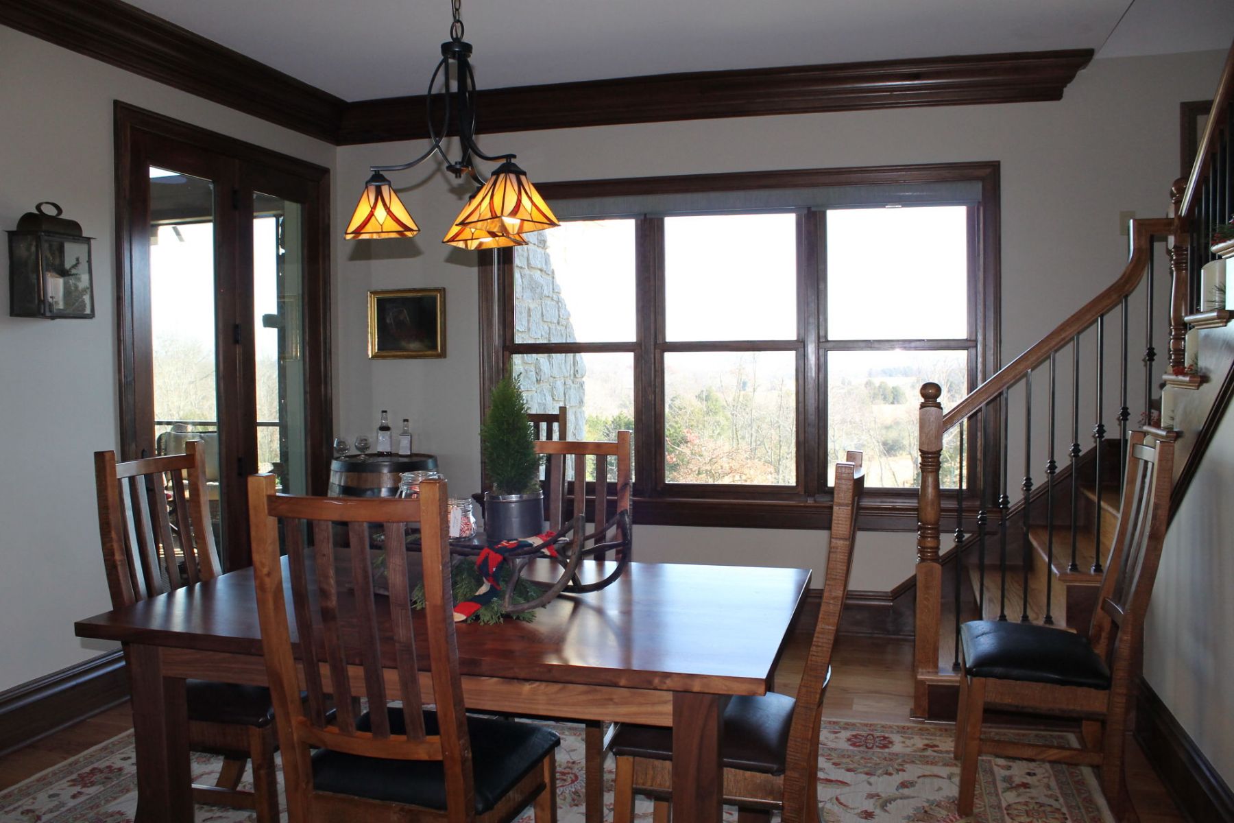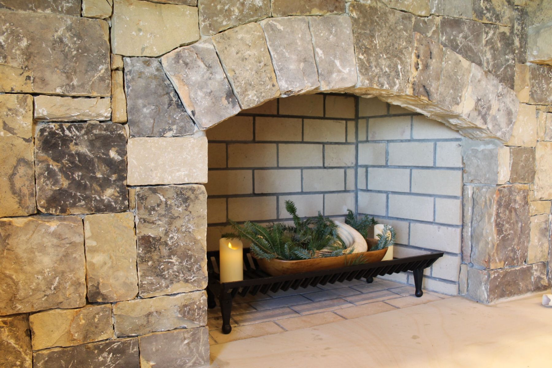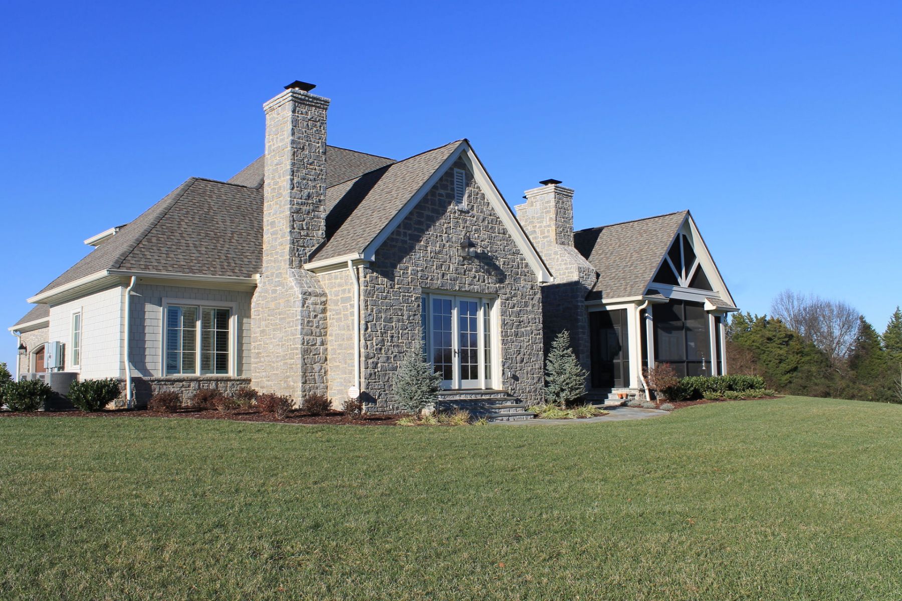 This sprawling residence features soaring timber-framed ceilings and a floor-to-ceiling stone hearth that anchors the grand living space. The design seamlessly integrates a gourmet kitchen with copper accents and a masterfully crafted outdoor living area featuring a custom porch swing and stone fireplace.